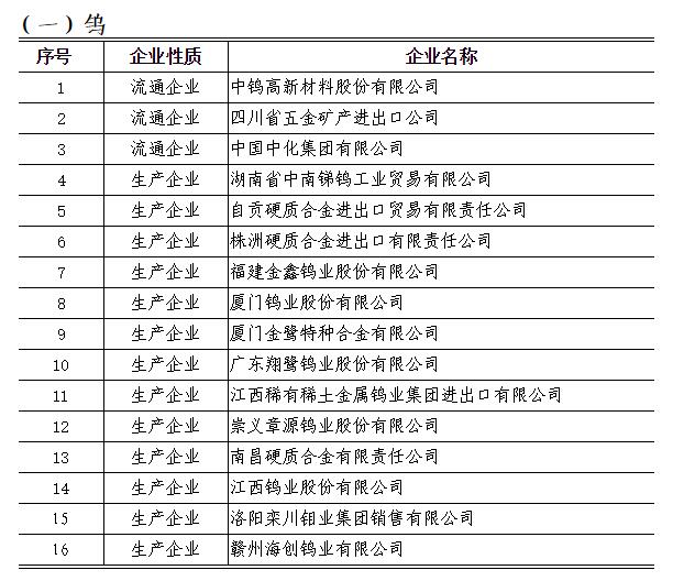 商務部關于公布2020-2021年度鎢、銻、白銀出口國營貿易企業名單的通知。 根據《中華人民共和國對外貿易法》和《中華人民共和國貨物進出口管理條例》,現公布2020-2021年鎢、銻、白銀出口國營貿易企業名單,請通知至相關企業。